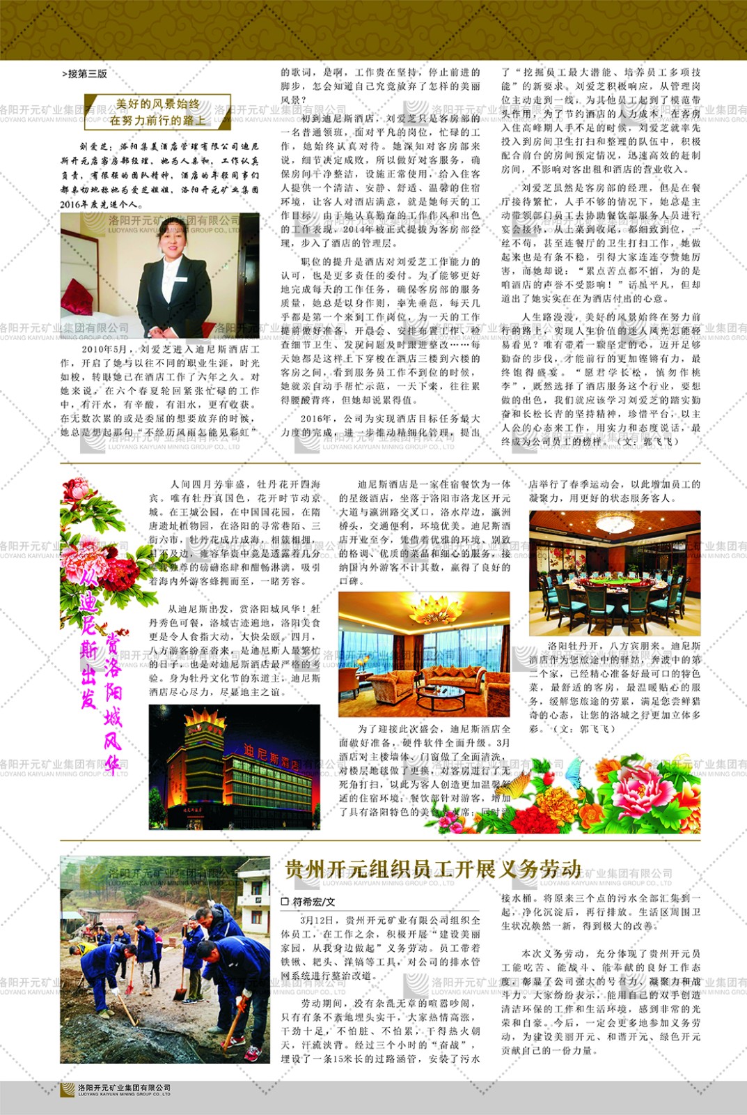洛陽開元礦業(yè)集團(tuán)有限公司簡介洛陽開元礦業(yè)集團(tuán)有限公司,始成立于2006年,位于洛陽市開元大道269號(hào)。集團(tuán)旗下共有十余家全資子公司,業(yè)務(wù)涉及有色金屬礦山開發(fā)、礦產(chǎn)品購銷與進(jìn)出口貿(mào)易、房地產(chǎn)開發(fā)、文化藝術(shù)、企業(yè)管理與咨詢、資本投資等多個(gè)領(lǐng)域。2024年,集團(tuán)公司銷售總額達(dá)7.8億元。民建河南省委委員、民建河南省委企業(yè)委副主任、民建洛陽市委委員、企業(yè)委主任、洛陽民建企業(yè)家協(xié)會(huì)會(huì)長許明月是公司創(chuàng)始人,現(xiàn)任洛陽開元礦業(yè)集團(tuán)有限公司董事長。在礦業(yè)領(lǐng)域,洛陽開元礦業(yè)集團(tuán)擁有多家實(shí)力雄厚的子公司:貴州開元礦業(yè)有限公司探、采礦權(quán)面積共11.33平方公里;興??h銅鑫礦業(yè)有限公司探礦權(quán)面積8.76平方公里,礦山資源潛力巨大;2021年,開元集團(tuán)與盧氏中科礦業(yè)有限公司開展戰(zhàn)略合作。盧氏中科礦業(yè)有限公司專注于有色金屬的浮選、加工和銷售,擁有強(qiáng)大的技術(shù)支撐平臺(tái),是集探、采、選、冶、研為一體的中大型綜合礦業(yè)企業(yè)。目前,盧氏中科王家河1000噸選礦廠已成功投產(chǎn),雙河金礦、柳關(guān)欒盧鉛鋅礦相繼順利開工,樓房銀礦與圪老灣鉛鋅礦的深部探礦重大突破,標(biāo)志著礦山版圖取得重大進(jìn)展,為開元集團(tuán)后續(xù)發(fā)展奠定了堅(jiān)實(shí)基礎(chǔ)。在文化傳媒領(lǐng)域,洛陽市明月美術(shù)館通過豐富多樣的藝術(shù)展覽、學(xué)術(shù)研討和公共教育活動(dòng),努力打造一個(gè)集展覽、交流、教育、研究為一體的綜合性藝術(shù)平臺(tái)。此外,在金融投資領(lǐng)域,開元集團(tuán)旗下的北京明峰資本管理有限公司專注于投資具有高增長潛力的優(yōu)秀企業(yè),特別是高科技、新能源、環(huán)保等新興產(chǎn)業(yè),為客戶提供個(gè)性化的資產(chǎn)配置服務(wù)。在做好企業(yè)經(jīng)營的同時(shí),開元集團(tuán)始終不忘企業(yè)的社會(huì)責(zé)任和家國情懷,以突出的愛心公益事跡,開展了一系列公益慈善活動(dòng):“民建林”公益事業(yè)通過“思源基金”“幫幫公益”線上公益平臺(tái),與眾多愛心人士籌措資金20余萬元;資助541名貧困大學(xué)生共計(jì)270余萬元,推進(jìn)“數(shù)字助力——河南AI人才培養(yǎng)”;捐款10萬元,馳援京津冀、黑龍江洪水地質(zhì)災(zāi)害……公司于2017年底被洛陽市慈善總會(huì)評為“洛陽慈善風(fēng)云榜——十大愛心集體”。洛陽開元礦業(yè)集團(tuán)有限公司秉承持續(xù)發(fā)展理念,憑借多年來良好的企業(yè)信譽(yù)與經(jīng)營業(yè)績,與全國多家企業(yè)建立了良好合作關(guān)系,受到社會(huì)各界的一致好評,多次榮獲“納稅標(biāo)兵”“先進(jìn)企業(yè)”“招商引資模范企業(yè)”等榮譽(yù)稱號(hào)。回望來時(shí)路,開元人勠力同心,以“闖”的精神和“創(chuàng)”的勁頭,一路披荊斬棘,踏過千山萬水;展望新未來,開元人凝心聚力,不執(zhí)于“舊”,無畏于“新”,秉承“勇于跨越,追求卓越”的企業(yè)精神,乘著國家高質(zhì)量發(fā)展新征程的東風(fēng),跨過高山,越過大海,向著集團(tuán)多元化、國際化的目標(biāo),逐夢遠(yuǎn)航,跨越前行!